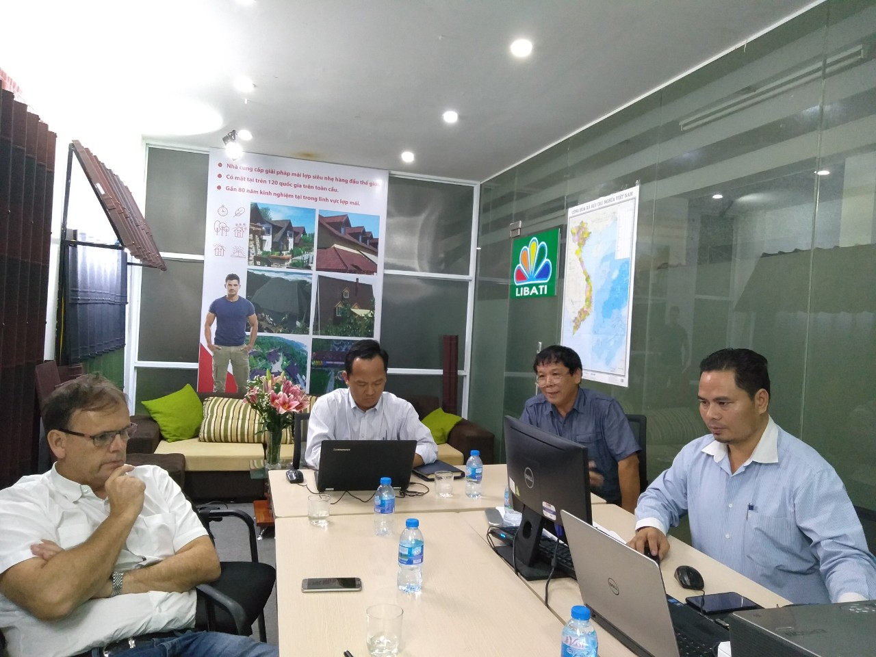 Ông Nguyễn Trọng Hậu -TGĐ Công ty TNHH LIBATI (NPP Miền Bắc) đã có buổi họp làm việc với Ông Olivier Guyllui – TGĐ khu vực Châu Á-Thái Bình Dương của Tập đoàn Onduline, Ông Hồ Trường Lâm – Tổng Giám đốc Công ty TNHH OFIC Việt Nam (Đơn vị đại diện tập Đoàn Onduline tại Việt Nam), GS,TS Nguyễn Minh Sơn (Cố vấn chuyên môn)